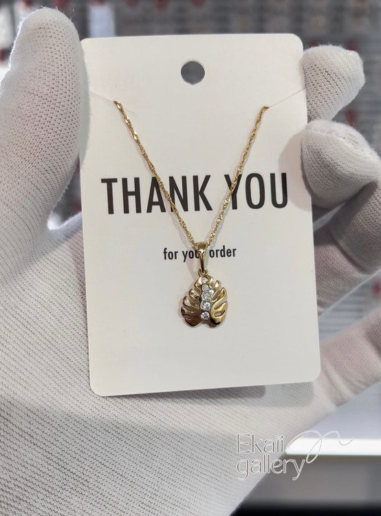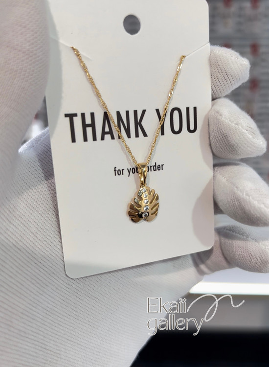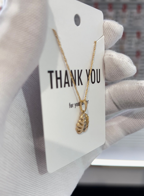 گردنبند با طرح برگهای ظریف و آبکاری طلای ۱۸ عیار از برند ژوپینگ. این محصول با دقت بسیار بالا طراحی شده و کاملاً مشابه نمونههای طلا میباشد.