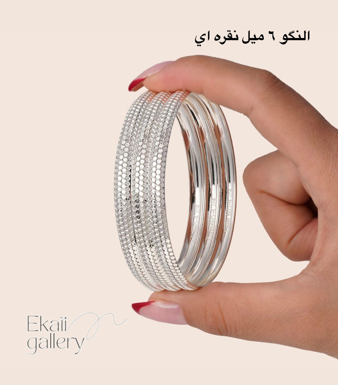 النگو زنانه با پهنای ۶ میلیمتر و آبکاری رادیوم (سفید). این محصول با ضمانت رنگ ثابت و درخشش مشابه جواهرات نقره و طلا سفید طراحی شده است.