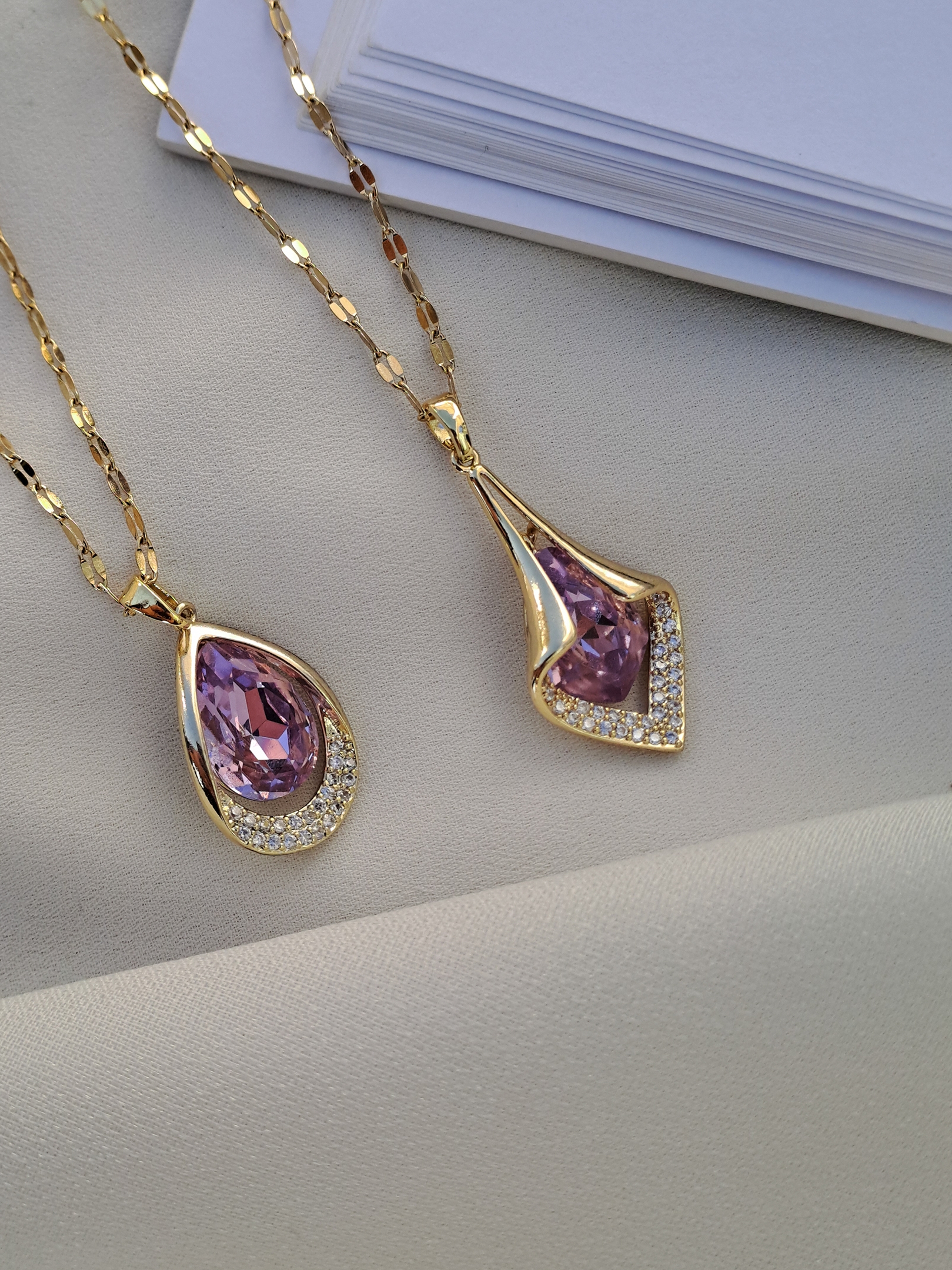 گردنبند استیل تکنگین صورتی طرح جواهری